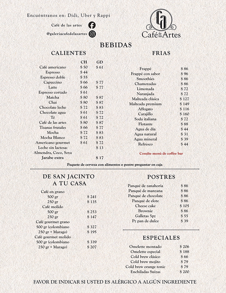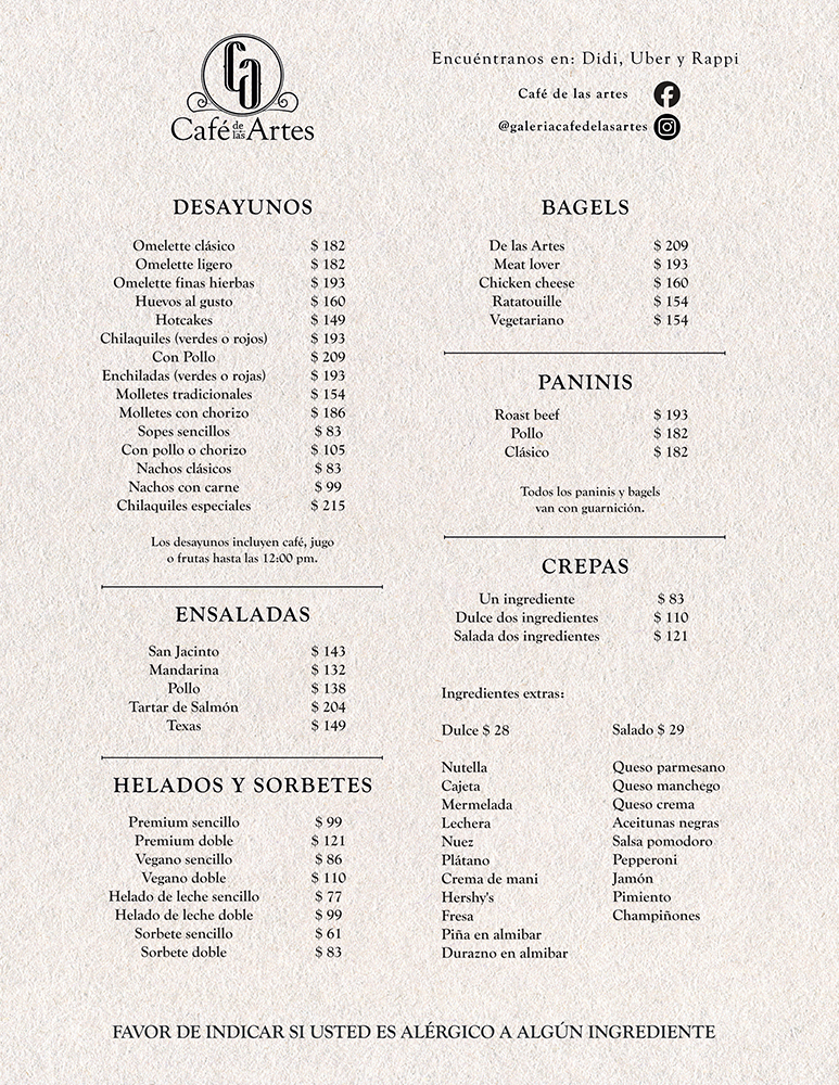 Encuentra café, tisanas, paninis, ensaladas, postres artesanales y más.